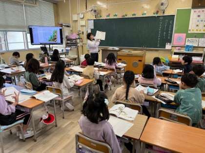 2月26日(月)1時間目、1年2組は国語で「スイミー」の学習をしていました。スイミーが見たおもしろいものを選び、それを見た時の気持ちを考えていました。