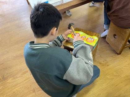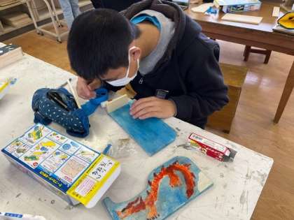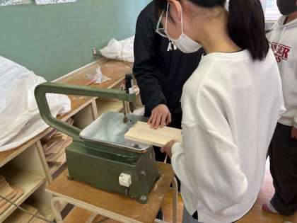 2月26日(月)2時間目、6年1組は図工でテープカッターを作っていました。