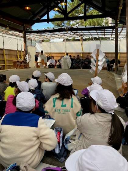 2月26日(月)4年は住吉大社に社会見学に行きました。相撲場を見せていただきました。立浪部屋のお相撲さんに会えたようです。