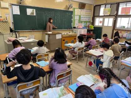 2月27日(火)1時間目、1年1組は国語でスイミーと小さな魚たちが言った言葉から気持ちを考えていました。