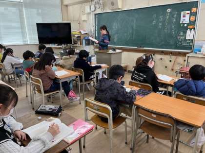 2月27日(火)2時間目、4年1組は国語で「世界一美しいぼくの村」を学習していました。先生の範読を聞きながら、場面分けをしていました。
