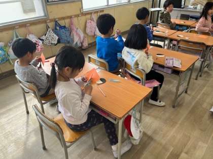 2月27日(火)5時間目、1年2組は図工で6年生に渡すメダルを作っていました。