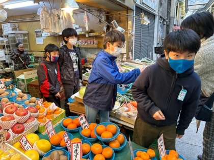 2月27日(火)5年2組が粉浜商店街で商売体験をしました。元気よく呼び込みをする子と恥ずかしそうに言う子がいました。元気のよい店で買おうと思いました。