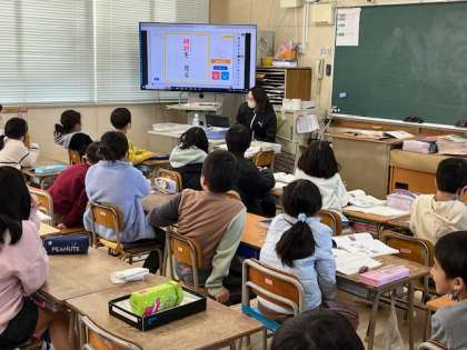 2月28日(水)1時間目、2年2組は国語で、漢字の読みの学習をしていました。