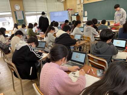 3月1日(金)1時間目、6年1組は理科で先生が作った「空気とわたしたちの生活」のプレゼンを見ながらワークシートをしていました。