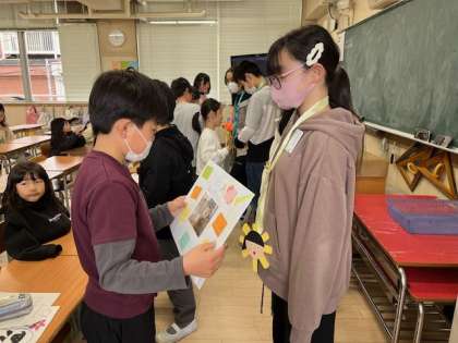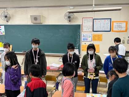 3月1日(金)3時間目、たてわり班で集まり「ありがとう6年生の会」を行いました。1〜5年生が心を込めて作った色紙を渡し、ありがとうの言葉を一人ずつ伝えました。お返しに6年生が「情熱大陸」の演奏と「大切なもの」の合唱を動画で送りました。6年生からも1〜5年生に言葉があり、とてもよい雰囲気の会になりました。