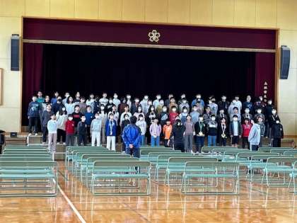 3月1日(金)5時間目、6年は講堂で歌の練習をしていました。