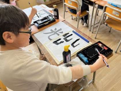 3月4日(月)1時間目、3年1組は書写で「光」の練習をしていました。