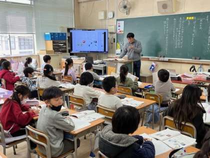 3月4日(月)3時間目、2年1組は国語で植木鉢の穴の役割を読みとっていました。