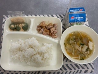 よもぎだんごは草だんごとも呼ばれます。よもぎはキク科の植物です。 春に生える若い芽の部分を食用とします。給食では、甘いみつをからめたよもぎだんごに、きな粉をかけていただきました。