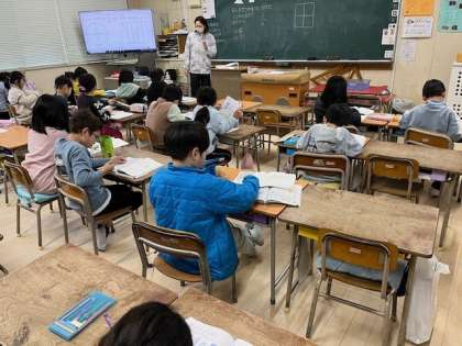 3月5日(火)4時間目、2年2組は算数で分数の表し方を学習していました。
