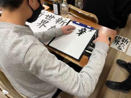 3月5日(火)4時間目、6年2組は書写で「新しい世界」を練習していました。
