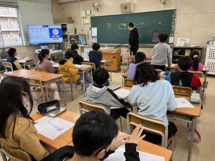 3月6日(水)1時間目、4年2組は算数で復習のプリントをしていました。