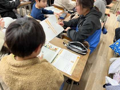 3月6日(水)1時間目、5年2組は道徳で「すれちがい」を学習していました。班で意見を交換していました。