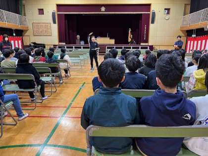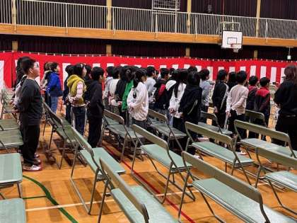 3月7日(木)2時間目、5年は講堂で卒業式の練習を行いました。初めは歌で声があまりでていませんでしたが、最後はしっかりと声が出ていました。