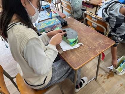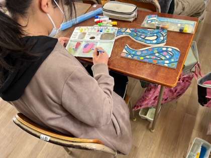 3月7日(木)3時間目、6年2組は図工でテープカッターの仕上げをしていました。