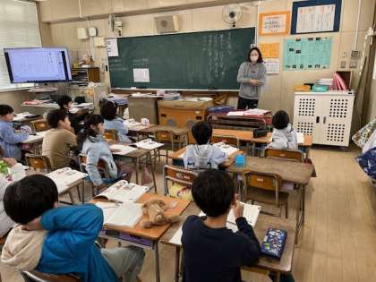 3月8日(金)1時間目、2年2組は国語で「すきな 場しょを 教えよう」を学習していました。思いつく「好きな場所」を発表していました。