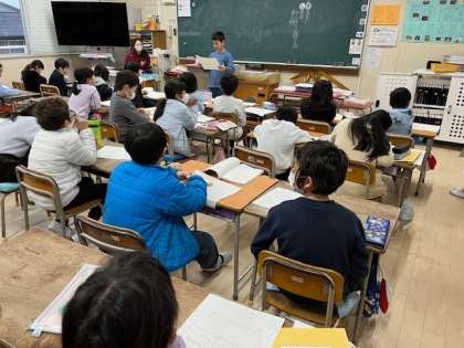 3月12日(火)1時間目、2年2組は国語で「すきな 場しょ」の発表をしていました。ワークシートを見ながら、しっかりと発表できていました。