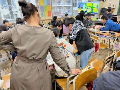 3月12日(火)1時間目、5年1組は外国語科で英語でスゴロクを楽しんでいました。