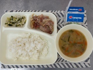 ・ごはん ・牛乳 ・豚肉のしょうが焼き ・さつまいものみそ汁 ・切干しだいこんのゆずの香あえ