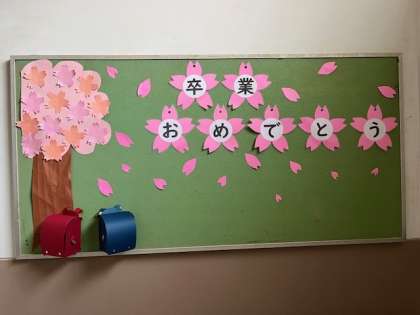 3月15日(金)新たな卒業掲示が登場しました。ランドセルが本物そっくりです。