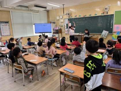 3月21日(木)1時間目、1年2組はお楽しみ会で先生のジェスチャーを当てていました。