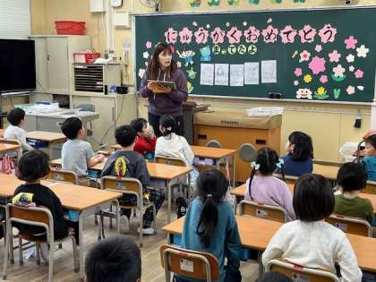 4月9日(火)1時間目、1年1組は給食の仕方について先生が説明していました。