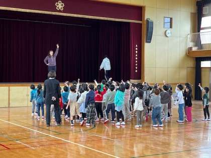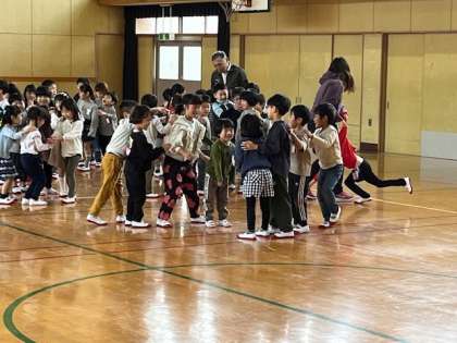 4月9日(火)20分休みに1年は体育館で遊んでいました。はじめにじゃんけんチャンピオンを決めた後、じゃんけん列車で楽しみました。