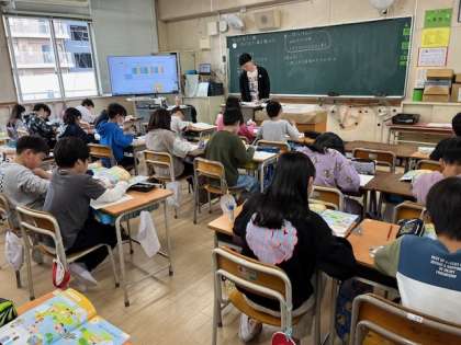 4月9日(火)3時間目、4年1組は算数で「一億より大きい数を表そう」を学習していました。