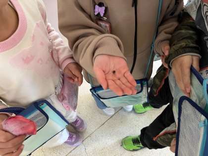 4月10日(水)1時間目、2年1組は生活科で「春さがし」をしていました。だんごむしを見つけたと見せてくれました。