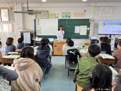 4月10日(水)4時間目、4年2組は音楽で楽器の音を聞いて楽器の名前を当てるクイズをしていました。