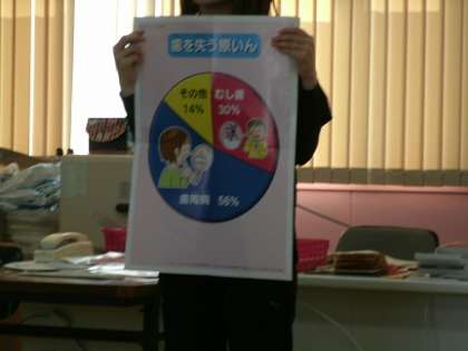 虫歯ケアーも大切ですが、歯垢を取るように歯を磨く、歯茎が腫れたら病院へ行くなどして、子どものうちから歯肉炎についても気をつけて欲しいと思います。