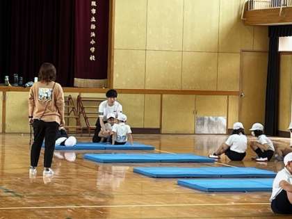 4月16日(火)1時間目、4年2組は新体力テストの上体おこしをしていました。
