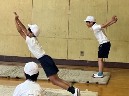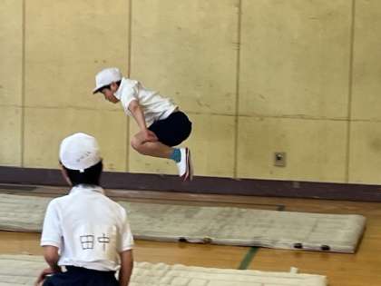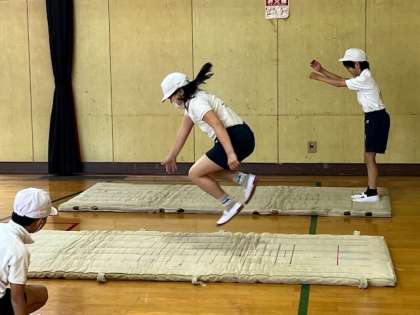 4月16日(火)1時間目、4年2組は新体力テストの立ち幅跳びをしていました。