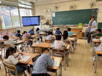 4月16日(火)1時間目、2年1組は算数でしたことを表やグラフにしていました。