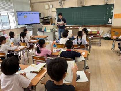 4月16日(火)1時間目、2年2組は国語で「風のゆうびんやさん」の音読をしていました。
