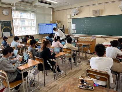 4月16日(火)1時間目、5年2組は算数でテストをしたあと、計算ドリルの直し等をしていました。