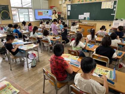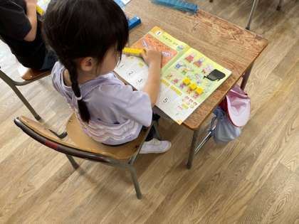 4月18日(木)3時間目、1年1組は算数で「10までの かず」を学習していました。ブロックを並べて数えていました。