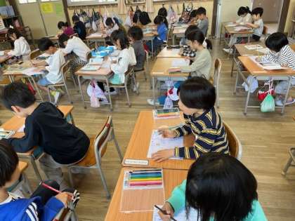 4月19日(金)1時間目、1年1組は国語で「い」と「こ」を練習していました。