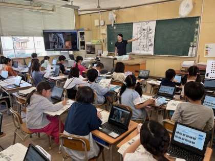 4月19日(金)1時間目、3年2組は社会科でB、昨日のまちたんけんで見つけたことを発表していました。