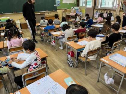 4月23日(火)1時間目、1年2組は国語でひらがなの「り」を練習していました。