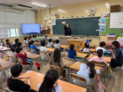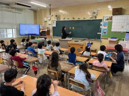 4月23日(火)3時間目、1年2組は算数で数字の学習をしていました。数と数字を結び付けられるように何度も繰り返していました。