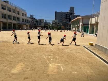 4月25日(木)4時間目、4年は体育でソフトボール投げの練習をしていました。昨年の体力測定で粉浜小の子はボール投げが弱い傾向があることがわかったので、本物のソフトボールを使っての練習はとても大事だと思いました。