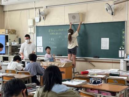 4月26日(金)1時間目、5年2組は算数で直方体を身の回りから探していました。