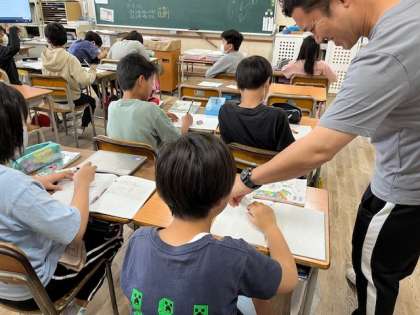 5月7日(火)1時間目、5年2組は直方体の高さと体積の変わり方を比べて、きまりをみつけようとしていました。