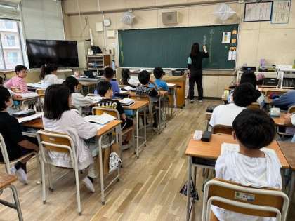 5月7日(火)1時間目、5年1組は国語でインタビューの仕方を考えていました。インタビューをお願いするときの目的を伝え、相手に日程のことを確認する方法を考えていました。