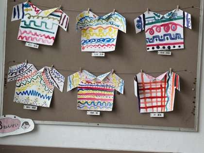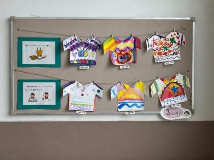 5月8日(水)南館の階段に3年の図工作品が掲示されていました。