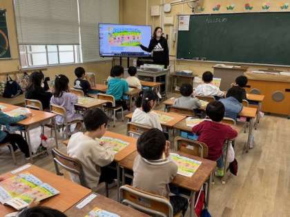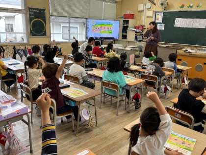 5月9日(木)1時間目、1年は1組2組ともに「なんばんめ」を学習していました。