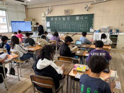 5月9日(木)1時間目、5年2組は国語で漢字の学習をしていました。書く練習が終わった人から漢字辞典を用意して部首等を調べていました。
