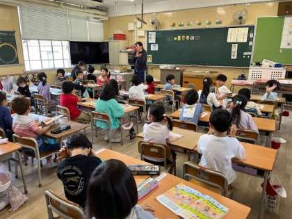 5月10日(金)2時間目、1年は1組も2組も算数で「なんばんめ」の学習をしていました。